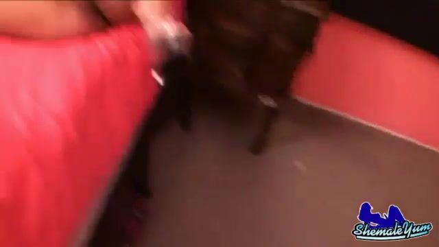 Beautiful shemale Kimberly Kills inserts huge black dildo in her ass